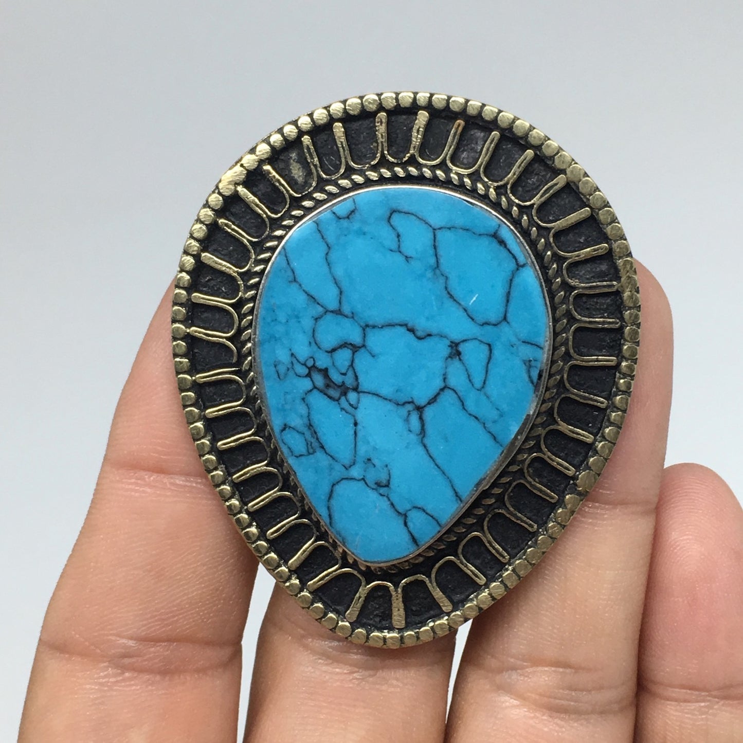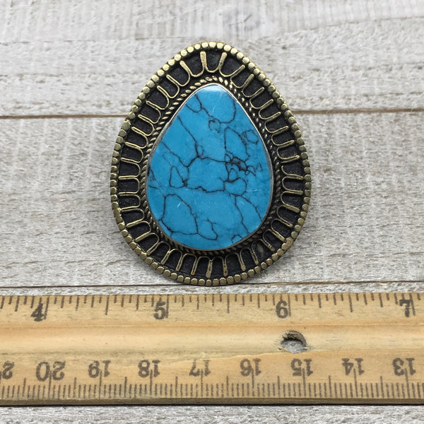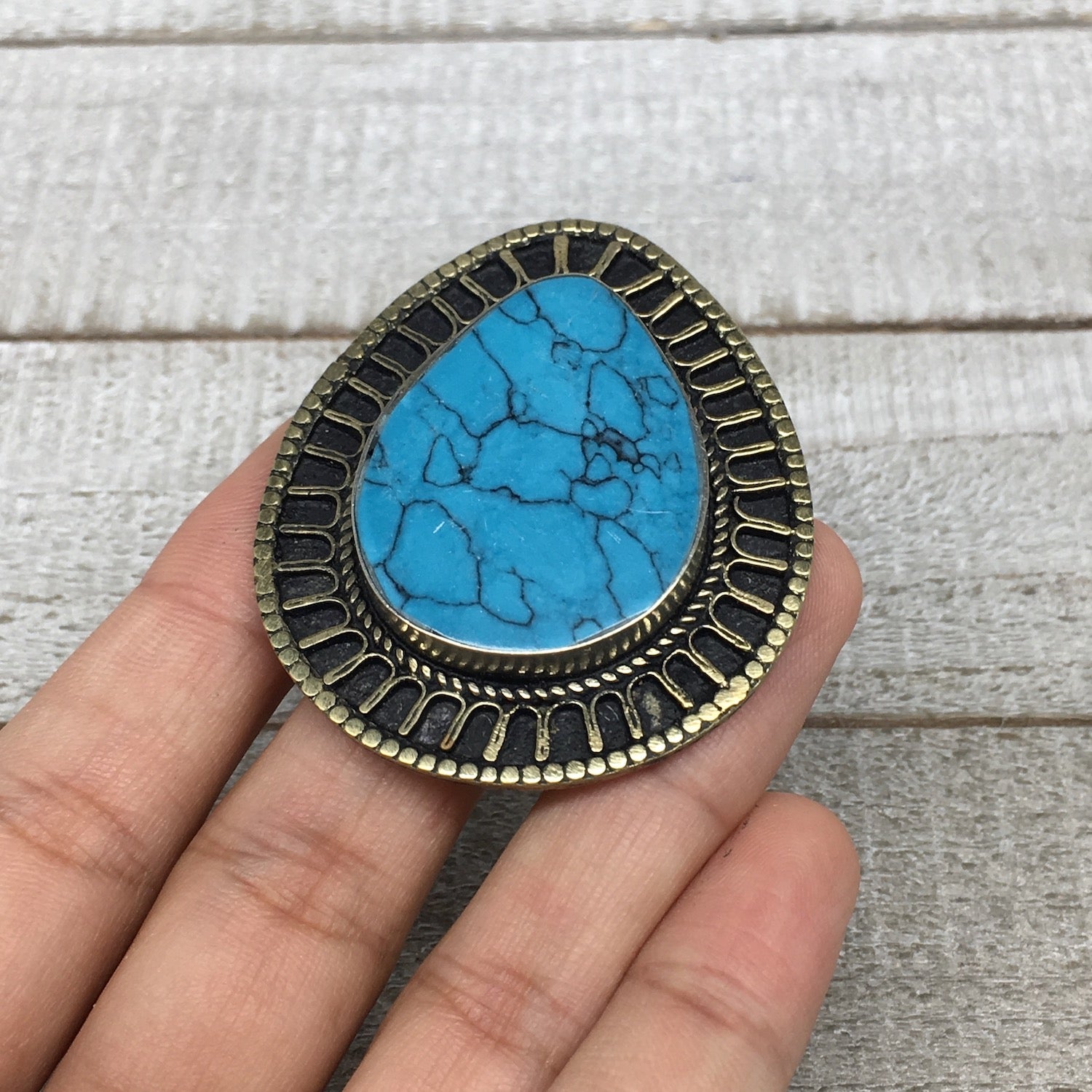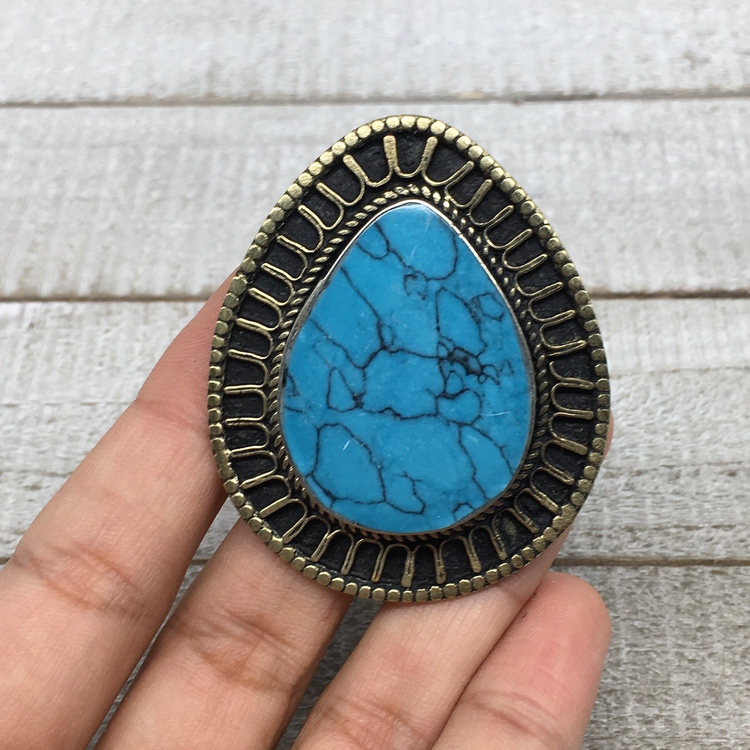 2.1"x1.7"x0.3" Blue Turquoise Inlay Ring Drop Shape, Turkmen Ring,7, 7.5, TR145