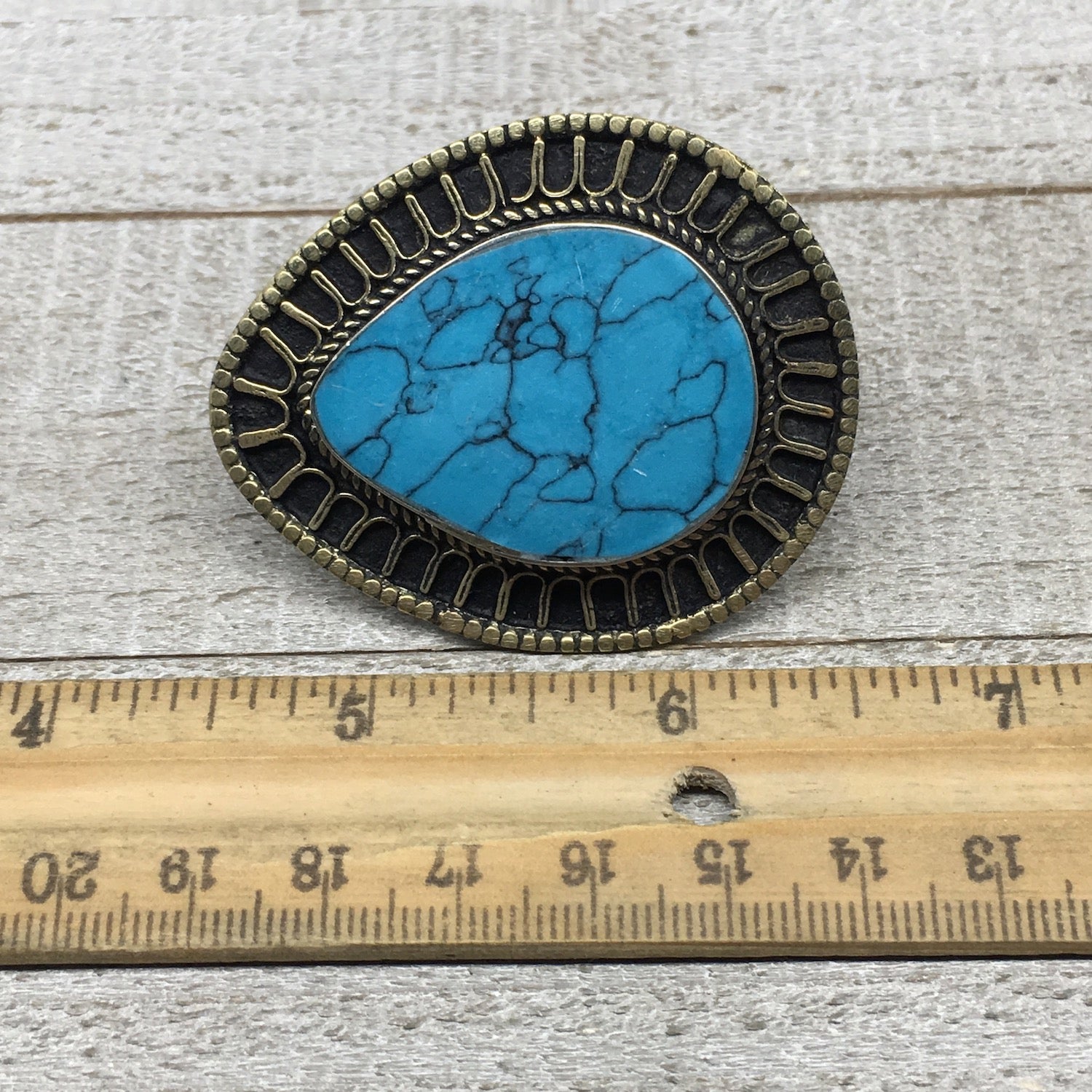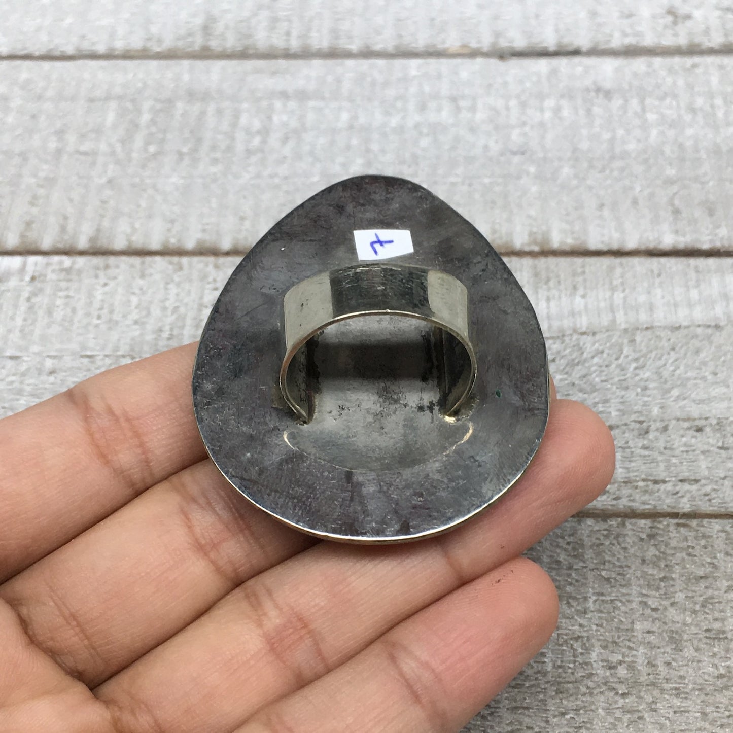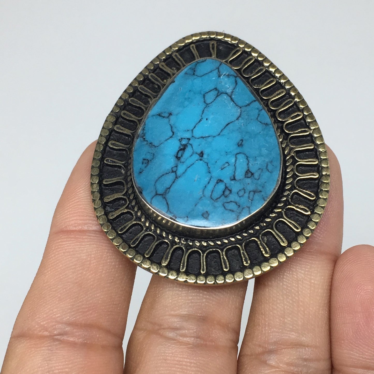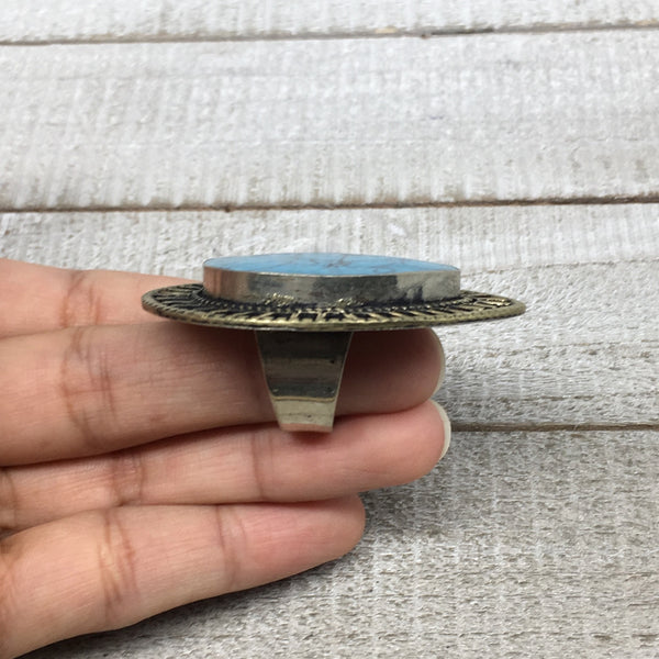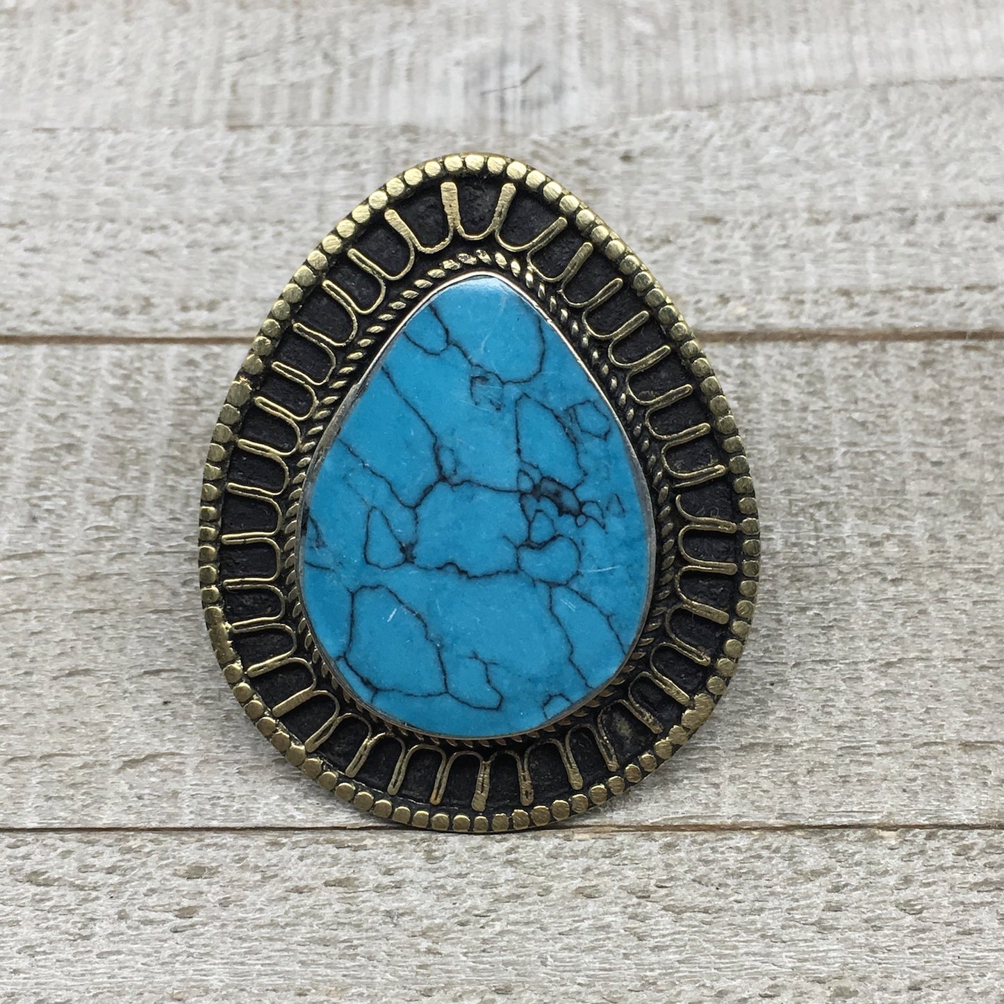 2.1"x1.7"x0.3" Blue Turquoise Inlay Ring Drop Shape, Turkmen Ring,7, 7.5, TR145