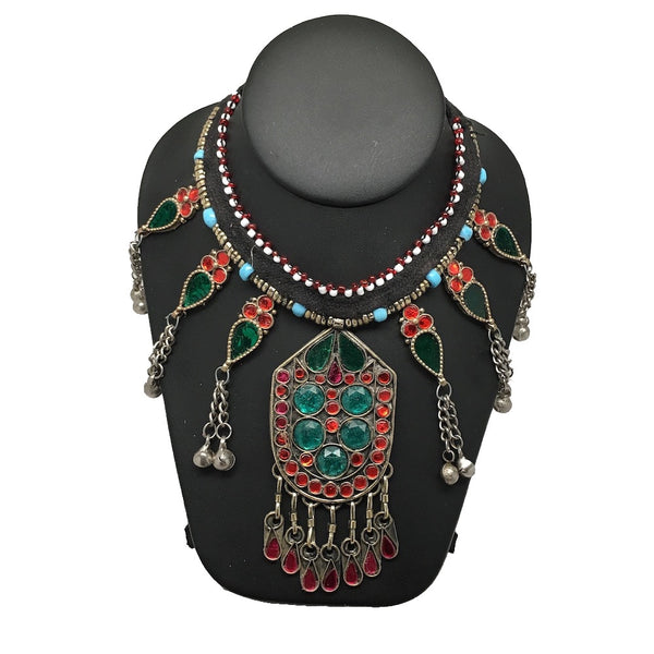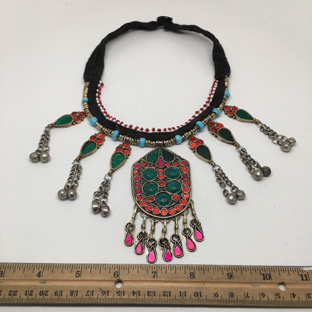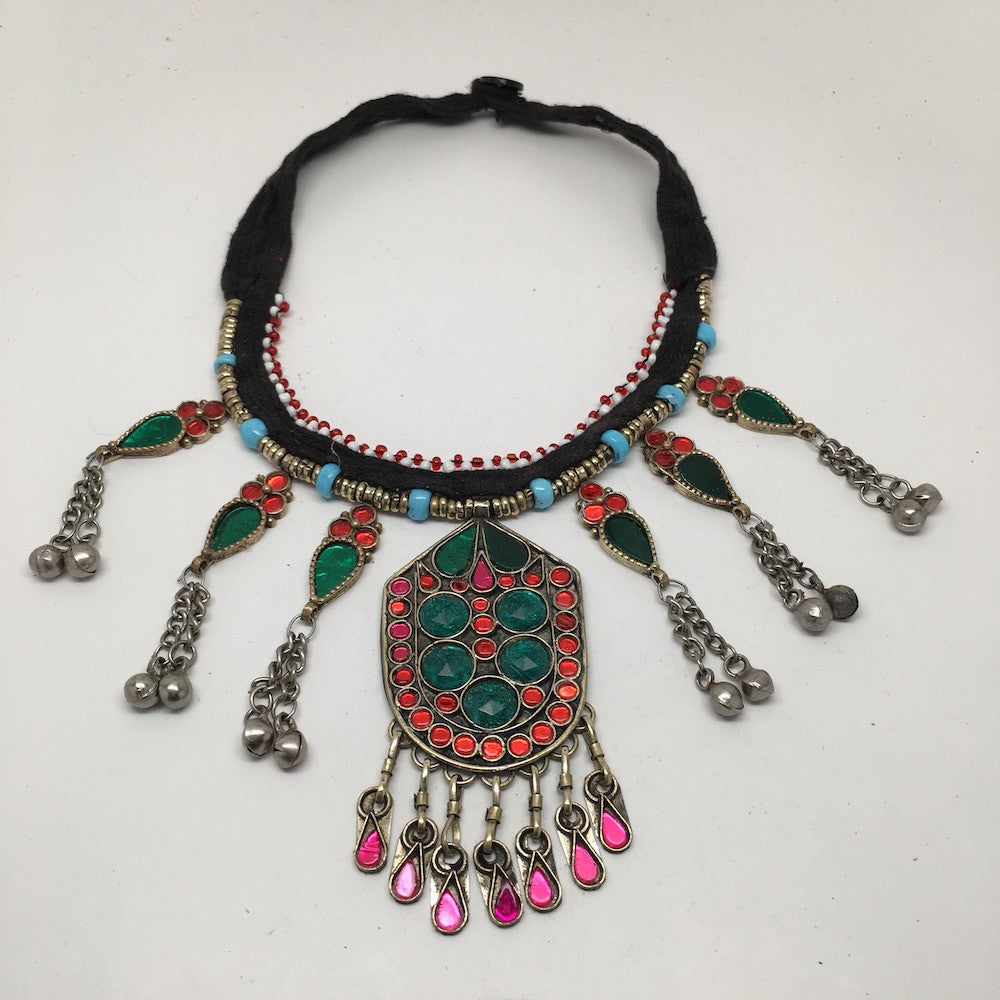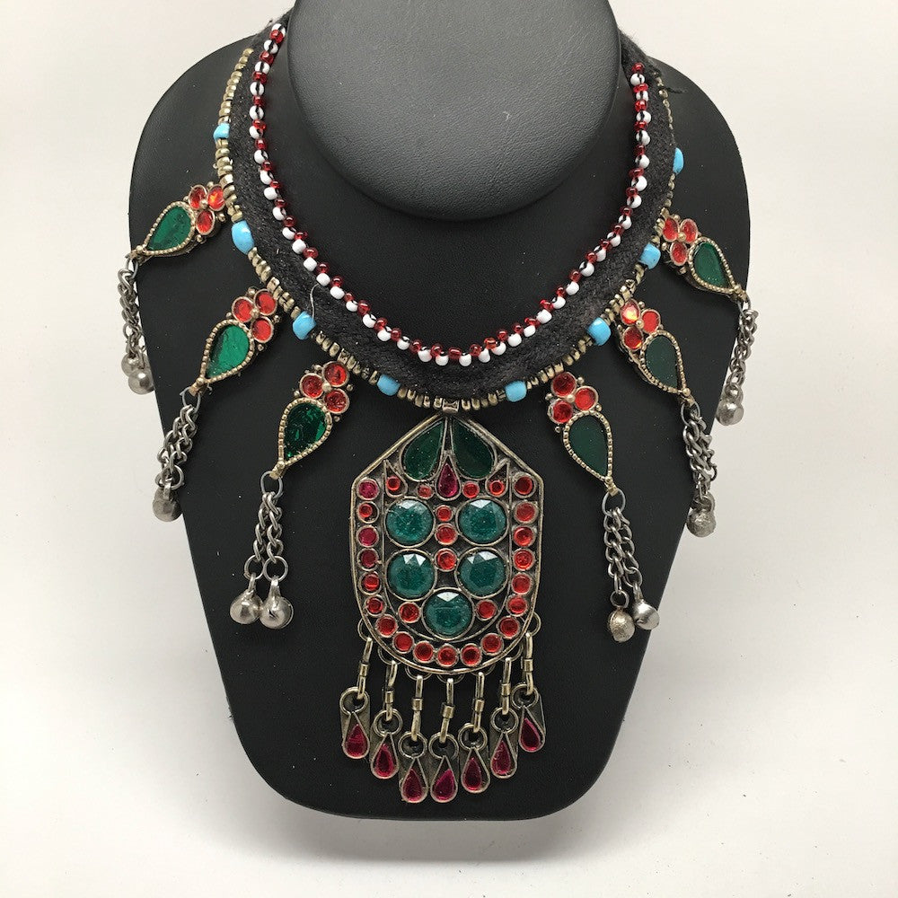 Vintage Afghan Turkmen Tribal Kuchi Fashion Glass Beaded Choker Necklace, KN147